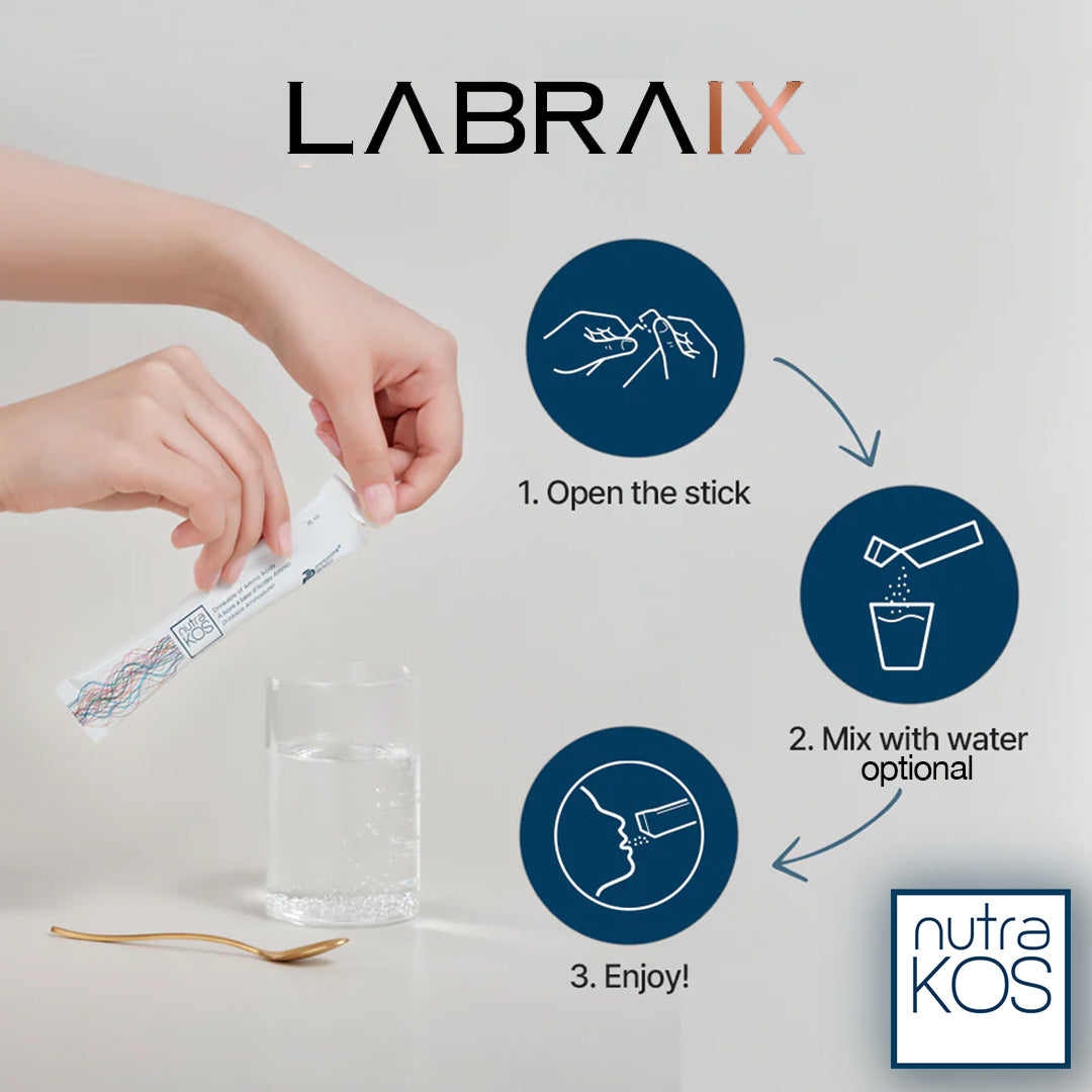 Tired of generic essential amino acid (EAA) powders, branched-chain amino acids (BCAAs), or protein shakes that promise "overall support" but deliver vague results? Those are great for general nutrition - like hitting daily protein goals - but they scatter broad benefits without precision. Nutrakos is different: it's a patented blend of exactly six amino acids (6AA) in a scientifically optimised ratio, designed specifically to support the building blocks of skin's extracellular matrix, like multiple collagen types and elastin.