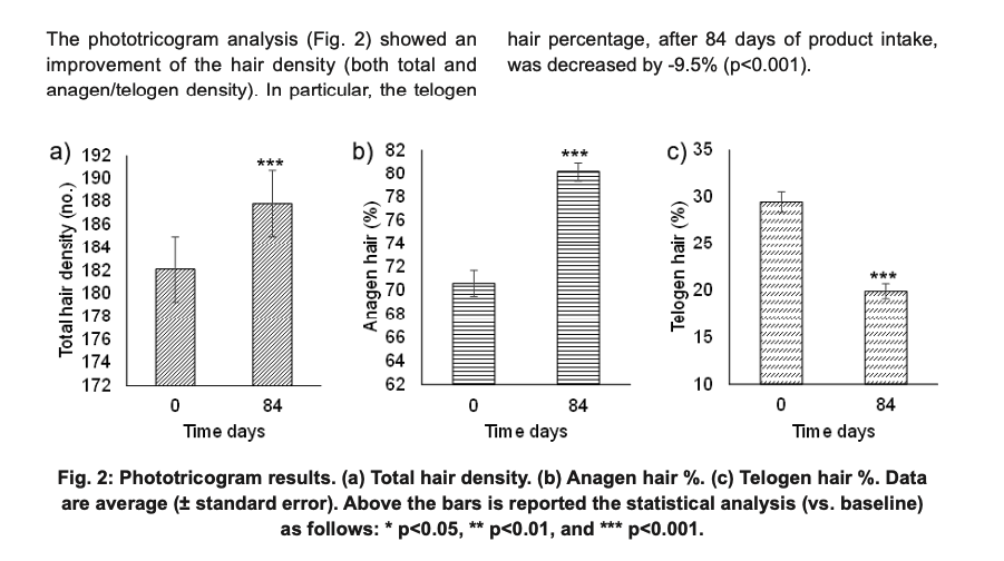 - Hair Strengthened: Telogen hair density (unwanted hair type in this context) dropped by 9.5% after 12 weeks in women with shedding concerns, with a 51% reduction in hair loss during pull tests.